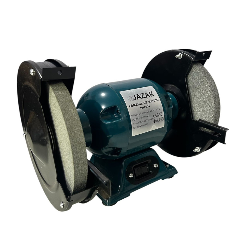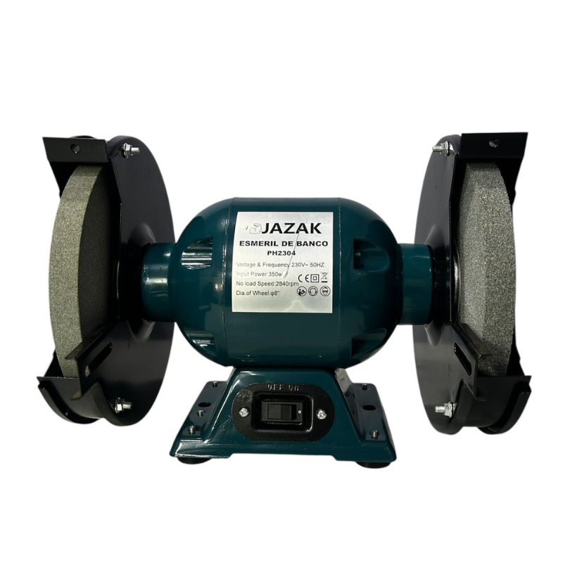La amoladora de banco Jazak es compacta y potente, ideal para trabajos de afilado, desbaste y pulido en talleres y uso doméstico. Su motor de 350W asegura rendimiento confiable y durabilidad.