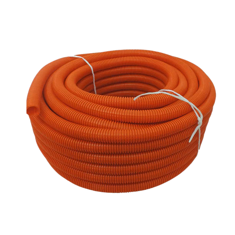 Se refiere a un tipo de tubería utilizada comúnmente en instalaciones eléctricas subterráneas. Está hecho de polietileno de alta densidad (HDPE) y se caracteriza por su color naranja y su estructura corrugada, lo que le confiere flexibilidad y resistencia a la compresión. Este tipo de tubería se utiliza principalmente para proteger los cables eléctricos enterrados, proporcionando un conducto seguro para el tendido de cables de potencia, telecomunicaciones, fibra óptica y otros tipos de cables. El caño corrugado naranja sirve para: Proteger los cables eléctricos: Al enterrar los cables eléctricos dentro del caño corrugado, se protegen de daños mecánicos, como la compresión, el impacto o la abrasión, así como de la humedad y otros agentes externos que podrían afectar su funcionamiento. Facilitar la instalación: La flexibilidad y la capacidad de curvatura del caño corrugado naranja permiten una instalación más sencilla, especialmente en terrenos irregulares o con curvas. Organizar los cables: Al utilizar el caño corrugado, se organiza y ordena el tendido de cables, lo que facilita la identificación, el mantenimiento y la reparación de los mismos en el futuro.