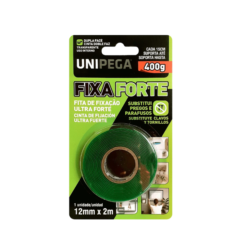 Es ideal para fijaciones ultra fuertes,sustituyendo el uso de clavos y tornillos. Se puede utilizar en la fijación de cuadros, llavero, espejos, objetos de decoración, canales y muchas otras aplicaciones. Su aplicación es rápida, fácil, segura y limpia, evitando la perforación de superficies. Se puede aplicar en cualquier superficie lisa, como paredes, acrílicos, vidrios, plásticos, metales, maderas (con barniz o pintadas) y revestimientos, en ambientes internos.
