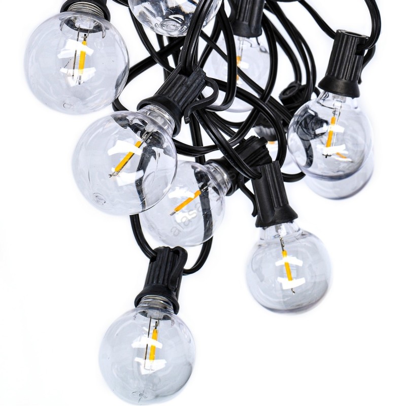 Es un conjunto de luces decorativas que consta de una cadena de luces LED de aproximadamente 5 metros de longitud, con 10 focos repartidos a lo largo de la cadena.