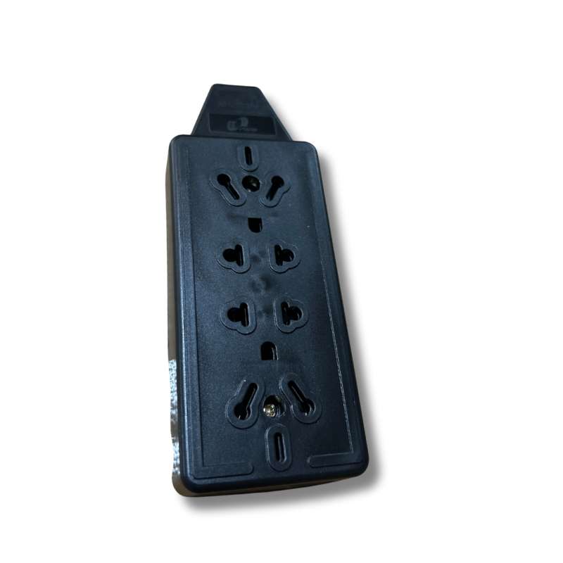 Es un dispositivo eléctrico diseñado para permitir la conexión simultánea de múltiples dispositivos electrónicos a una sola toma de corriente. Es una especie de extensión que cuenta con varios enchufes donde se pueden conectar varios cables de dispositivos electrónicos, como computadoras, teléfonos móviles, televisores, lámparas, entre otros. La principal función de un enchufe múltiple de 4 agujeros es proporcionar una solución conveniente para la distribución de energía eléctrica, permitiendo conectar varios dispositivos en un solo lugar. Esto es especialmente útil cuando hay una limitada disponibilidad de tomas de corriente en un espacio determinado, como en oficinas, salas de estar, dormitorios o salas de conferencias. Además, ayuda a organizar los cables y evitar enredos, lo que puede contribuir a la seguridad eléctrica en el hogar o en el lugar de trabajo.