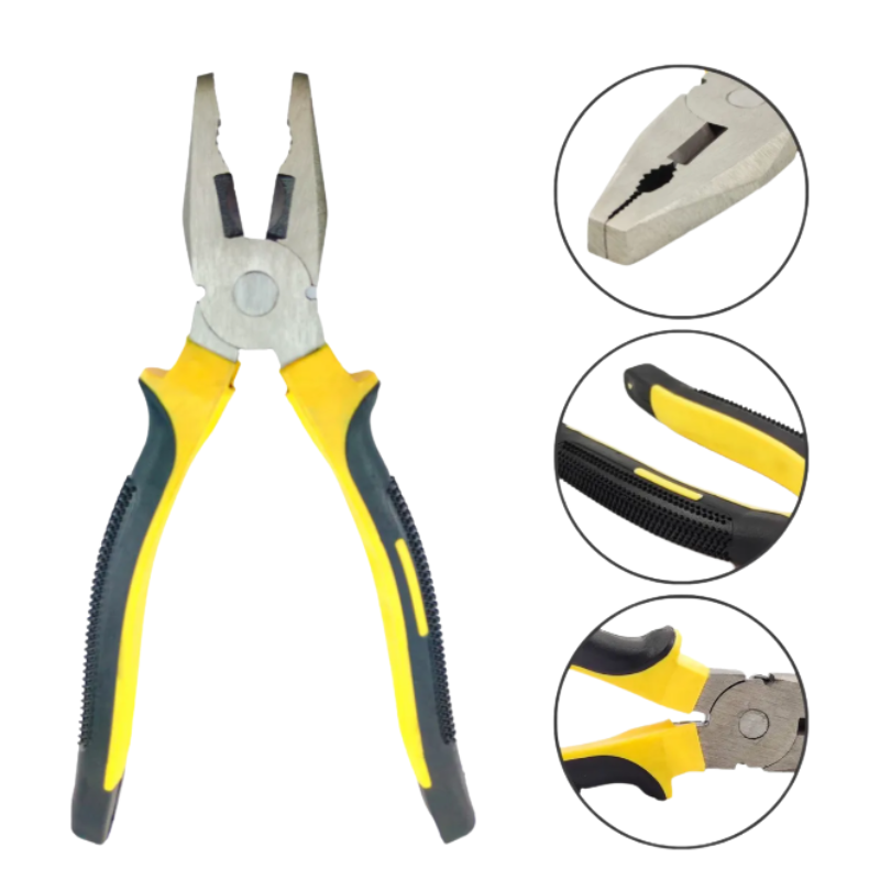 Es una herramienta de agarre manual que se utiliza para sujetar, torcer, cortar o manipular objetos en una amplia variedad de situaciones. Su diseño generalmente consta de dos mangos largos que están unidos en un extremo por una articulación y terminan en dos mandíbulas opuestas. Estas mandíbulas pueden ser rectas, curvas, dentadas o lisas, dependiendo de la función específica que se requiera. Las pinzas universales son herramientas versátiles y se utilizan en una variedad de campos, como la electrónica, la mecánica, la carpintería, la plomería, la joyería y la odontología, entre otros. Pueden ser útiles para sujetar objetos pequeños, doblar alambre, cortar materiales blandos y realizar una amplia gama de tareas de precisión. Su diseño adaptable las convierte en una opción popular para una variedad de aplicaciones en diferentes industrias.